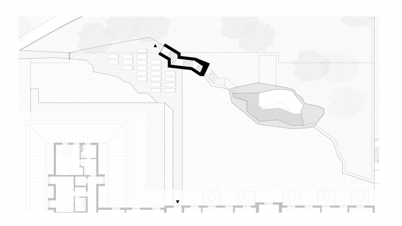 Jedním ze zásadních urbanistických problémů resortu Pustevny jsou necitlivé dostavby provozního zázemí a bazénu hotelu Tanečnica. Tyto objekty navrhujeme odstranit a nahradit zcela novou přístavbou, která by co nejvíce splynula s okolní krajinou a otevřela i severní polovině hotelu výhledy do krajiny. Tato nová přístavba wellness současně vymezuje dvůr vůči parkovišti.